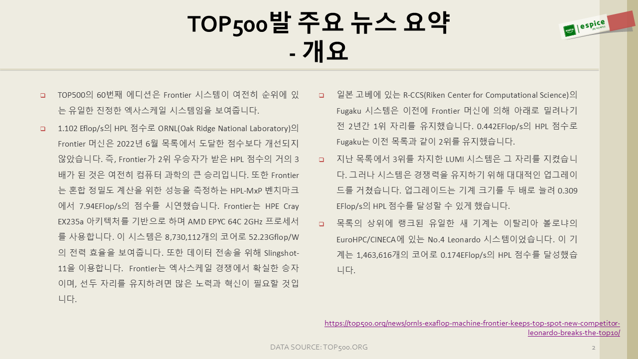 일단 TOP500 공홈에 올라온 주요 뉴스들 번역입니다.