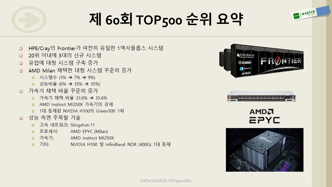 내년 6월 순위에는 H100을 탑재한 시스템이 꽤나 등장할 것 같은데 AMD와 제대로 붙어볼 수 있을 지 궁금해집니다.