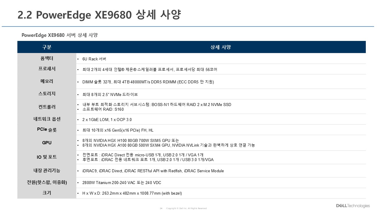 GPU server : Dell PowerEdge XE9680Event 2024. 9. 25. 09:07PowerEdge 16G 표준제안서 XE9680_v1.1.pdf6.80MB
