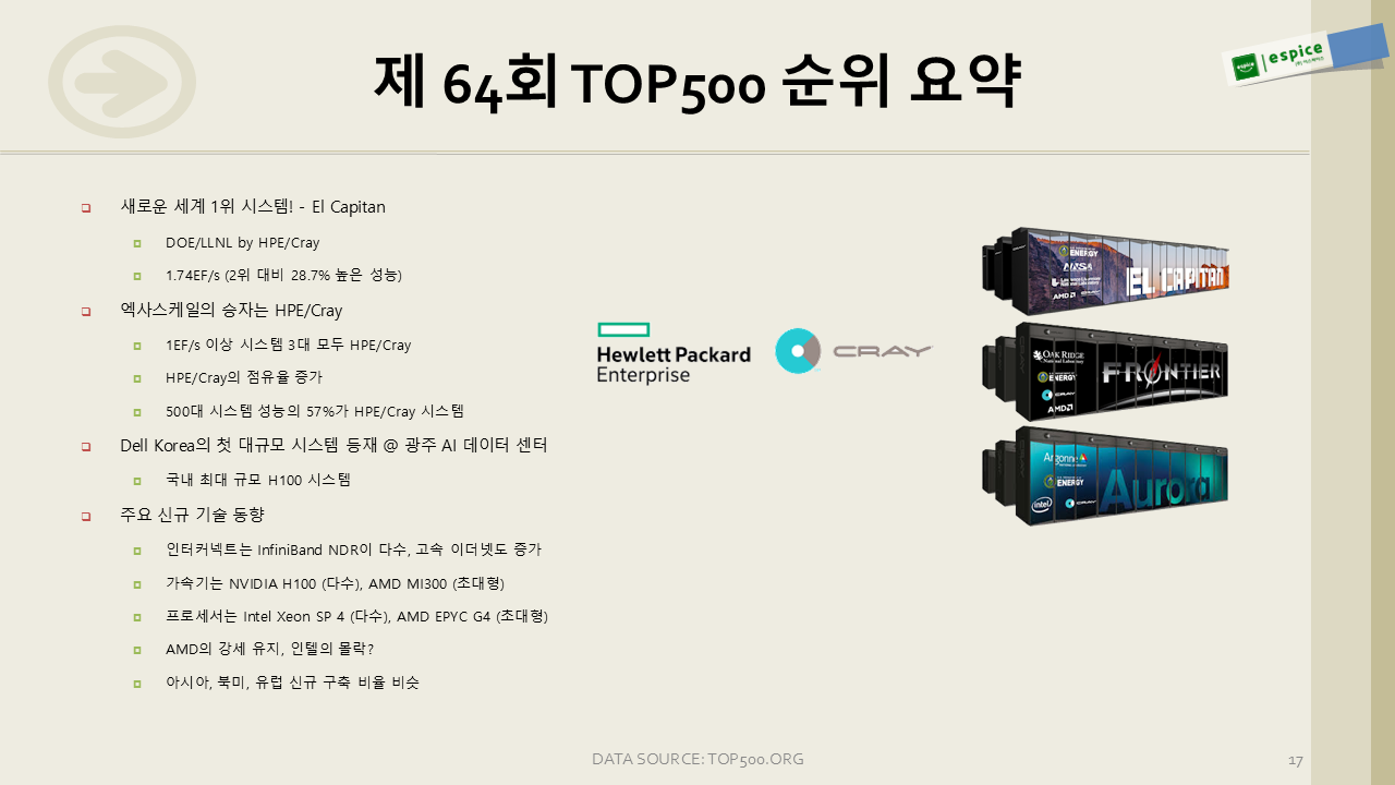 이렇게 이번 64회 TOP500 순위를 훑어보았습니다. 아래는 제 나름의 이번 순위 요약입니다.