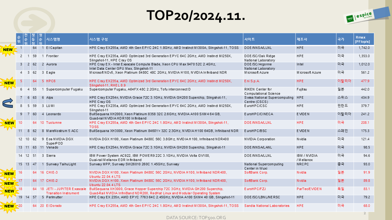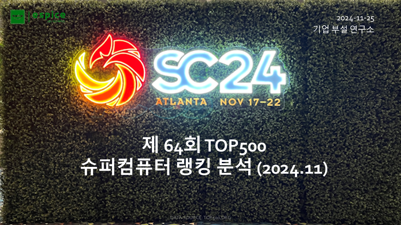 지난달 중순, SC24 행사에서 2024년 11월 제64회 TOP500 슈퍼컴퓨터 순위가 발표되었습니다.