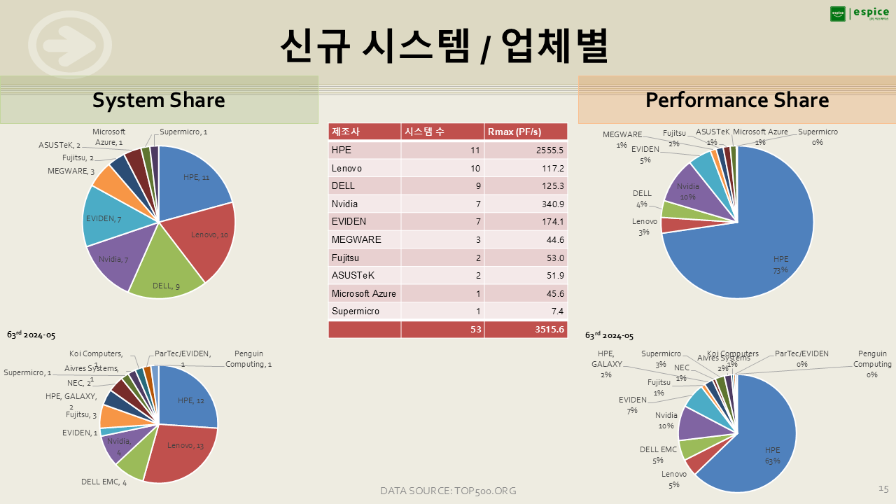 20위 이내 시스템 중 HPE/Cray 기반 시스템이 10대를 차지하며 대형 HPC 시장에서 독보적인 위치를 재확인했습니다.TOP500 측에서 공식적으로 발표한 뉴스 번역입니다. 그냥 읽어 보시면 됩니다.